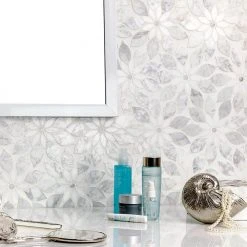 Thistle White 12.4 in. x 14.13 in. Polished Marble Mosaic Tile (1.21 sq. ft./Sheet) by Ivy Hill Tile