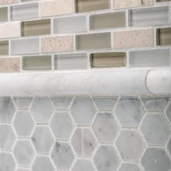 Carrrara 3/4″ x 11-3/4″ Marble Dome Tile is the perfect finishing piece for your bathroom or kitchen tile project. This finishing moulding features a honed finish in a neutral white color with natural carrara marble grey veining. Use it to add depth to you tile project with a border or as an accent piece to finish edges and corners. Recommended for backsplashes, bathrooms, kitchens, showers, and accent walls. Combine with mosaics and field tiles to create impressive installations. For best installation results, use white polymer-modified thinset.