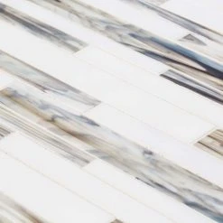 With its smooth, unglazed surface and its slight shade variation, Jeffrey Court Coastal Skies 14 in. x 11-3/4 in. Glass Mosaic Wall Tile can be installed alongside stone or ceramic field tiles (sold separately) to create a coordinated look. Mesh-mounted mosaics can be used as a whole sheet or cut to make affordable feature strips. A penetrating sealer is recommended before grouting. White polymer-modified thinset and non-sanded grout are advisable for best installation results.