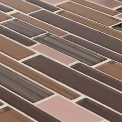Create an upscale look with our Gold Drop 11-3/4 in. x 10-3/4 in. Glass and Metal Mosaic. This linear mosaic combines glossy brown and bronze colored glass and rose colored stainless steel with a matte finish. Combine with other mosaics and field tiles to create impressive installations. For best installation results, use white polymer-modified thinset.