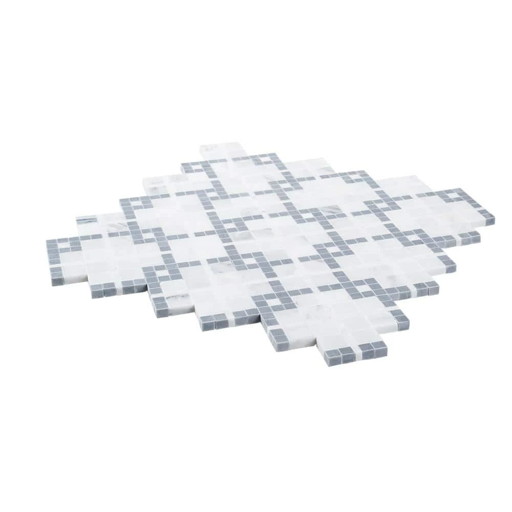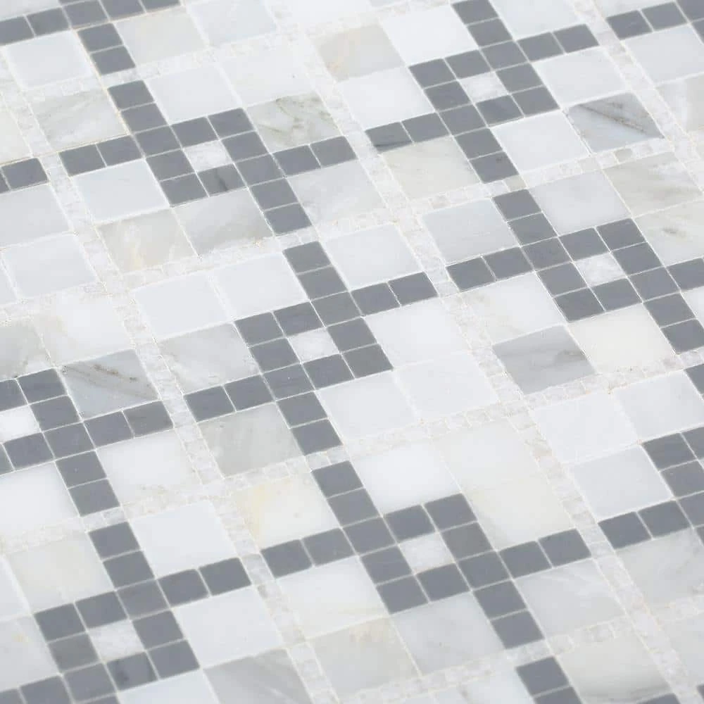 Inspired by the lightweight plaid fabric native to India, our Madras Cotton 12.5 in. x 12.5 in. Natural Marble Stone Tile gives any room in your home an open and airy feeling. The tile uniquely combines polished white Thassos marble, honed grey Bardiglio marble and honed white Carrara marble with gray veining. This natural stone mix adds depth and helps create a bigger space feel. Perfect for an array of styles, from traditional to modern. Combine with other mosaics and field tiles to create impressive installations. For best installation results, use white polymer-modified thinset.