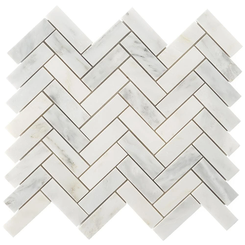 For backsplashes and other decorative uses, choose Ivy Hill Tile’s 12 in. x 12 in. Asian Statuary Herringbone 1 in. x 3 in. Marble Tile. It adds dimension and installs simply with mesh backing. And tiles can be separated to add to their design flexibility.