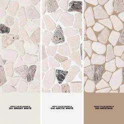 Bring the outdoors in or leave the natural beauty of River Rock Mosaics outdoors to add unique detail to any bathroom, kitchen, hearth surround and cabana. Add rustic detail to kitchen backsplashes, tub and shower surrounds, pool and spa water edges, pillars and accent walls. Mesh mounted River Rock mosaic tile.